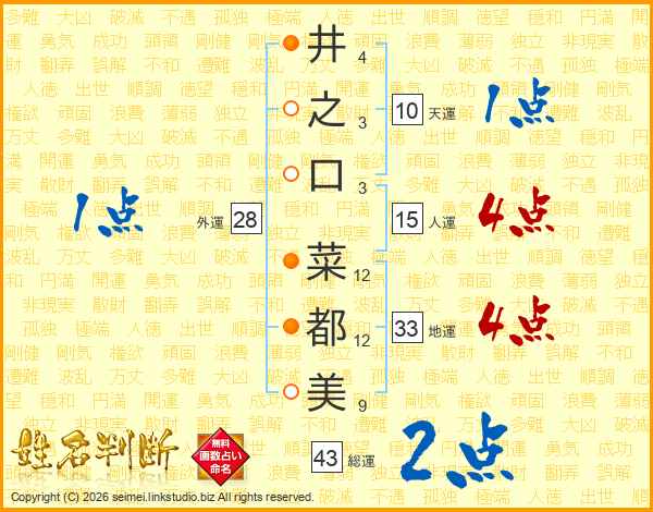 井(4画)之(3画)口(3画) 菜(12画)都(12画)美(9画)