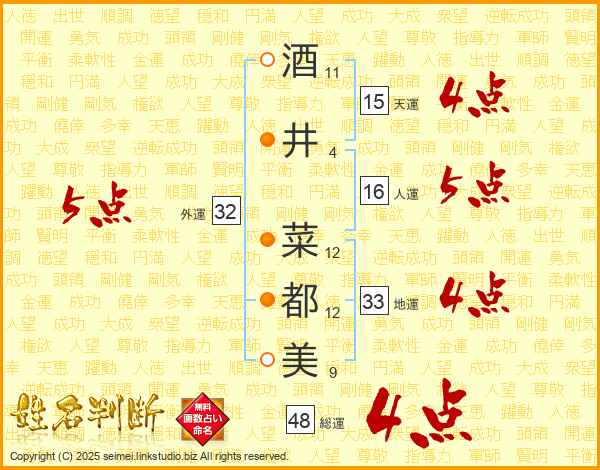 酒井菜都美さんの総運は48画の4点!