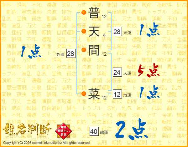 普天間菜さんの総運は40画の2点!