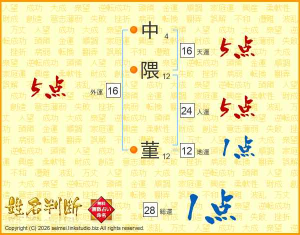 中隈菫さんの人運は24画の5点!