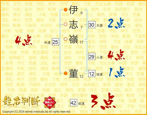 伊(6画)志(7画)嶺(17画) 菫(12画)