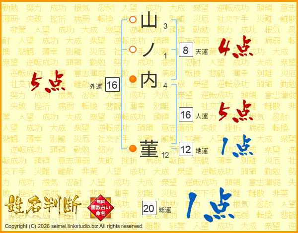 山ノ内菫さんの総運は20画の1点!