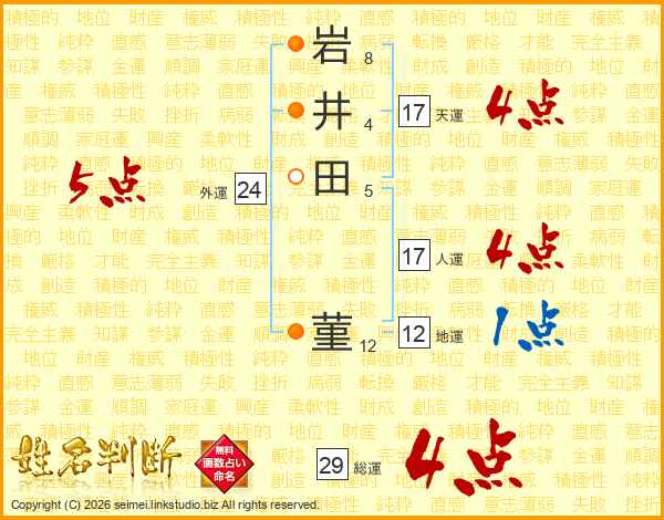 岩(8画)井(4画)田(5画) 菫(12画)