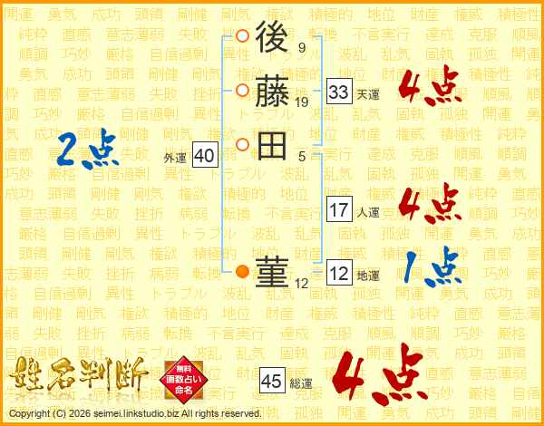 後藤田菫さんの総運は45画の4点!