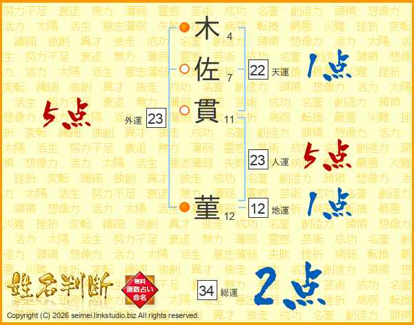 木佐貫菫さんの人運は23画の5点!