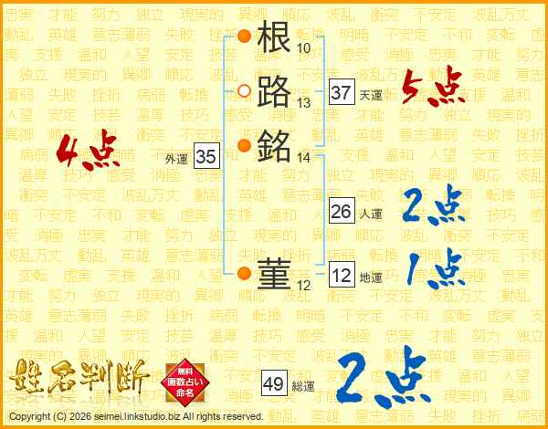 根路銘菫さんの総運は49画の2点!