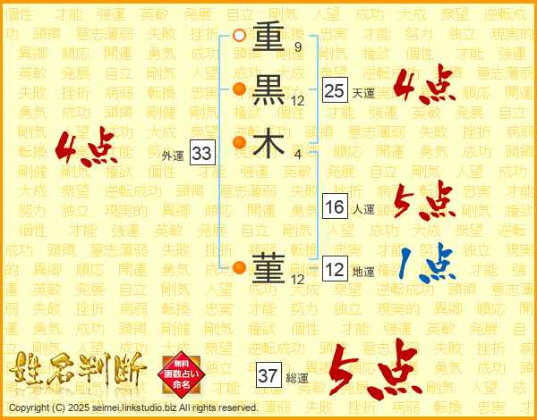重黒木菫さんの外運は33画の4点!