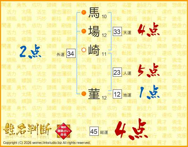 馬(10画)場(12画)崎(11画) 菫(12画)