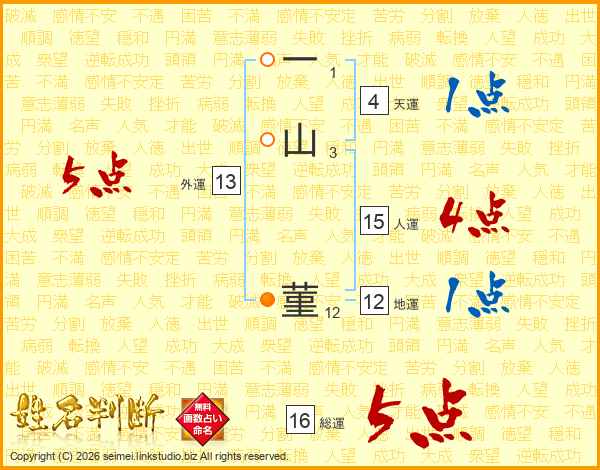 一山菫さんの人運は15画の4点