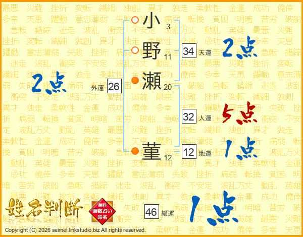 小(3画)野(11画)瀬(20画) 菫(12画)