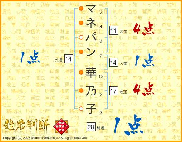 マネパン華乃子さんの総運は28画の1点!