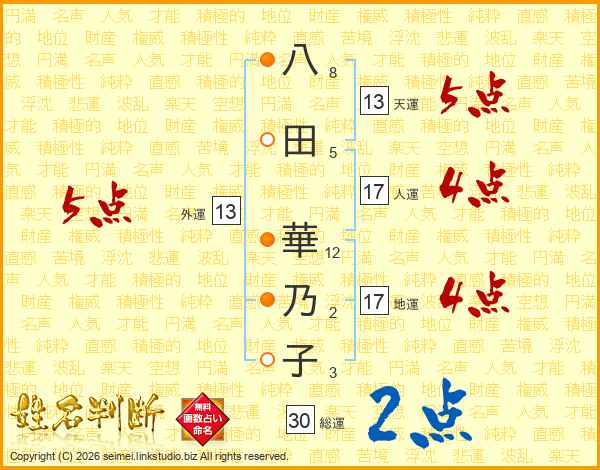 八田華乃子さんの総運は30画の2点!