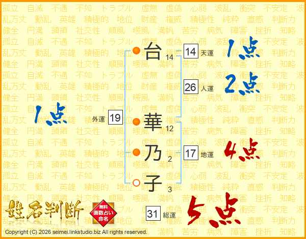 台華乃子さんの人運は26画の2点!