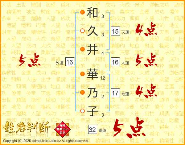 和(8画)久(3画)井(4画) 華(12画)乃(2画)子(3画)