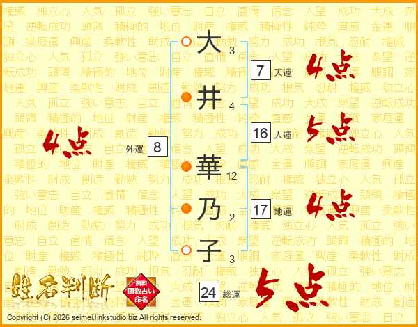 大(3画)井(4画) 華(12画)乃(2画)子(3画)