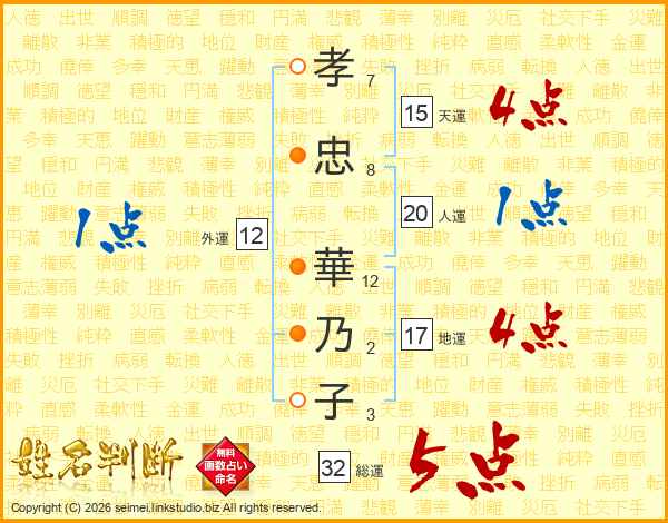 孝忠華乃子さんの総運は32画の5点!