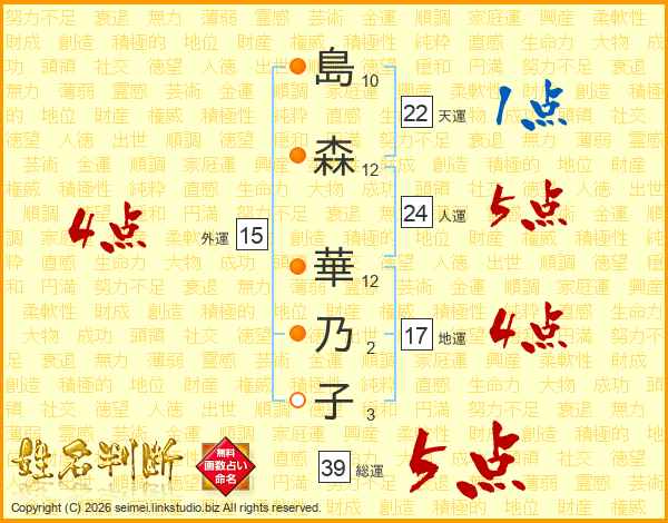 島森華乃子さんの総運は39画の5点!