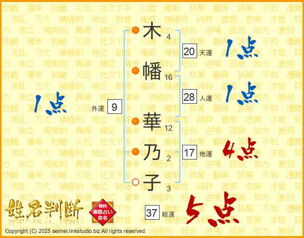 木幡華乃子さんの総運は37画の5点!