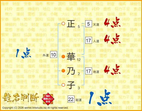 正華乃子さんの天運は5画の4点!