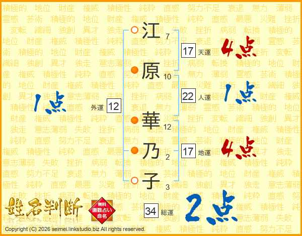 江原華乃子さんの総運は34画の2点!