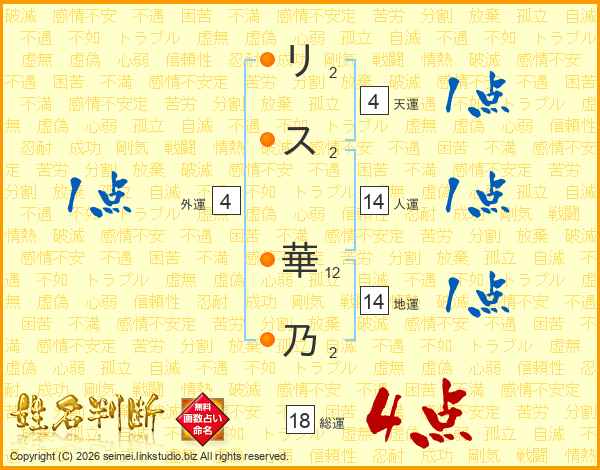 リス華乃さんの総運は18画の4点!