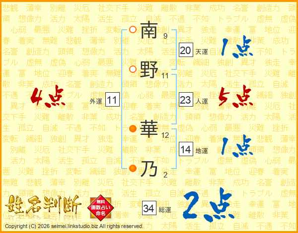 南野華乃さんの人運は23画の5点!