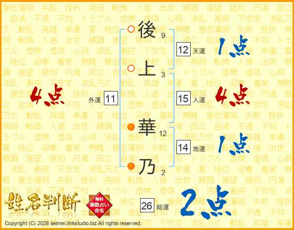 後上華乃さんの総運は26画の2点!