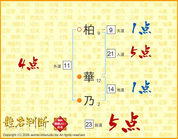 柏華乃さんの総運は23画の5点!