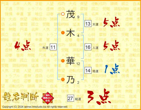 茂(9画)木(4画) 華(12画)乃(2画)