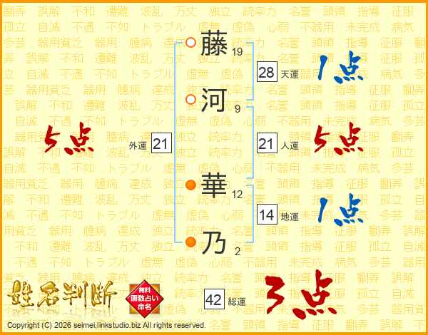 藤河華乃さんの外運は21画の5点!