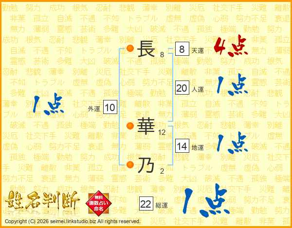 長華乃さんの総運は22画の1点!