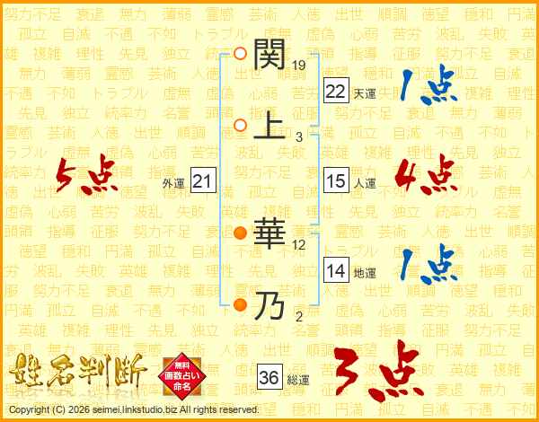 関上華乃さんの外運は21画の5点!