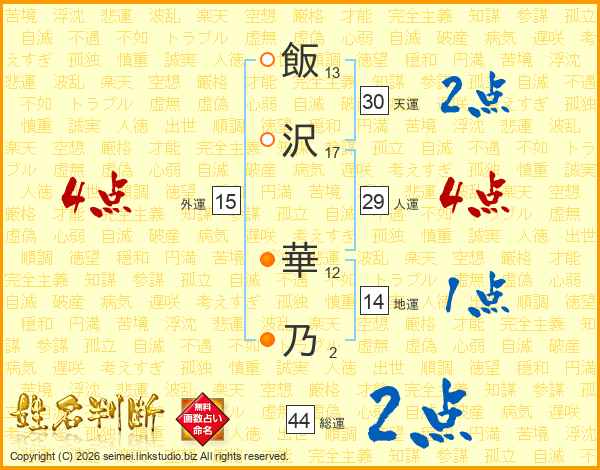 飯沢華乃さんの総運は44画の2点!