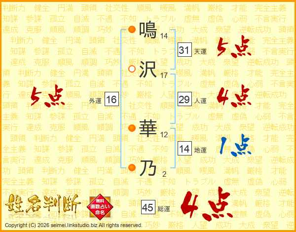鳴沢華乃さんの総運は45画の4点!