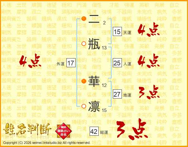二瓶華凛さんの外運は17画の4点!