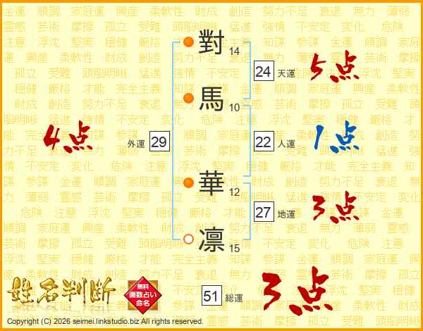 對馬華凛さんの天運は24画の5点!