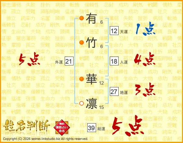 有竹華凛さんの外運は21画の5点!