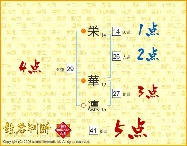 栄華凛さんの総運は41画の5点!