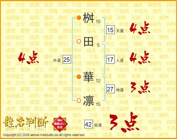 桝田華凛さんの天運は15画の4点!