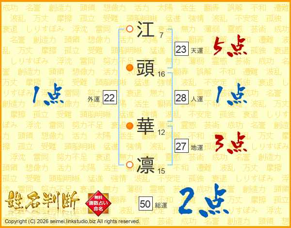 江頭華凛さんの天運は23画の5点!