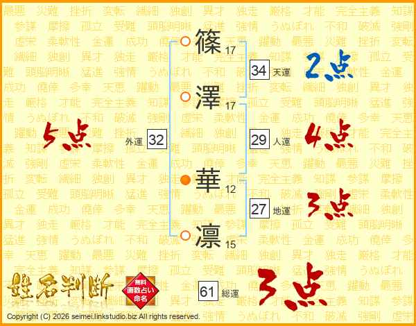 篠澤華凛さんの外運は32画の5点!