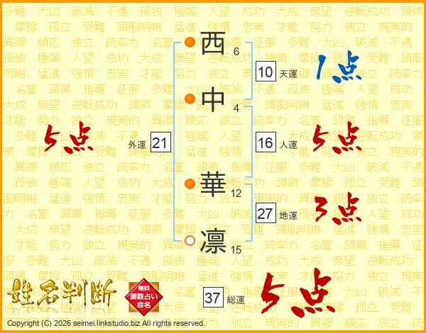 西(6画)中(4画) 華(12画)凛(15画)