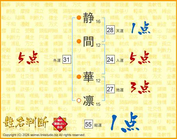 静間華凛さんの外運は31画の5点!