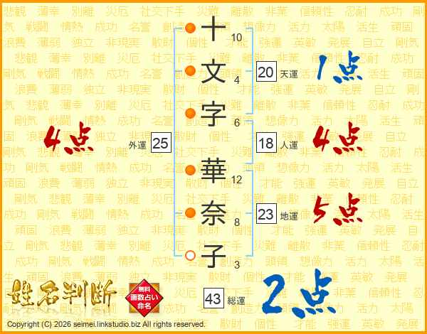 十文字華奈子さんの総運は43画の2点!