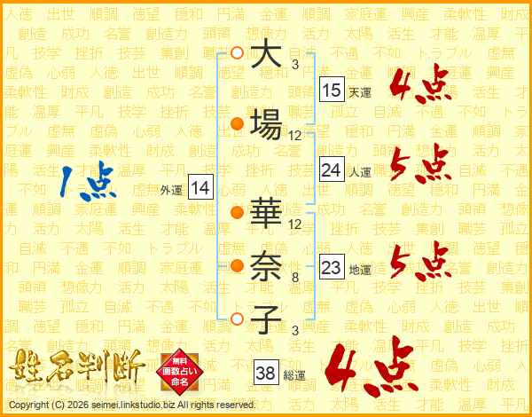 大場華奈子さんの総運は38画の4点!