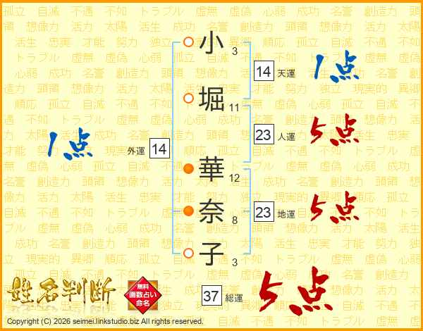 小(3画)堀(11画) 華(12画)奈(8画)子(3画)