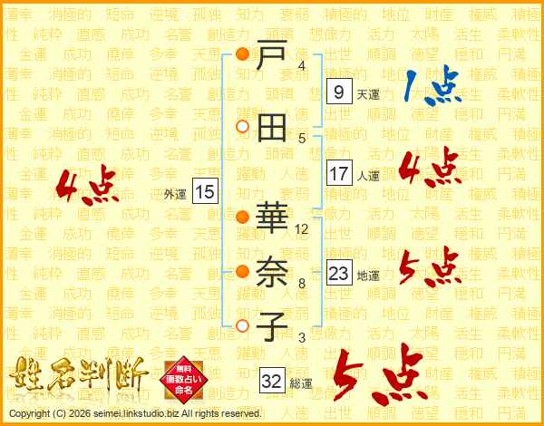 戸田華奈子さんの総運は32画の5点!