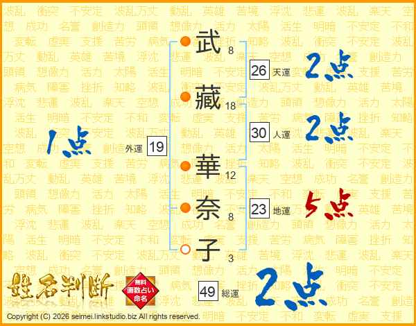 武藏華奈子さんの天運は26画の2点!