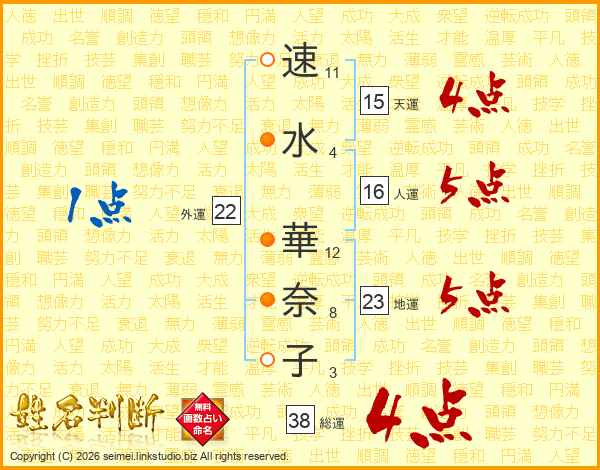 速(11画)水(4画) 華(12画)奈(8画)子(3画)