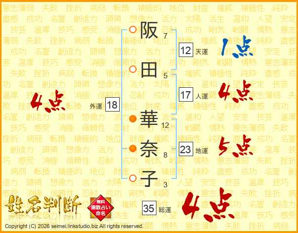 阪田華奈子さんの総運は35画の4点!